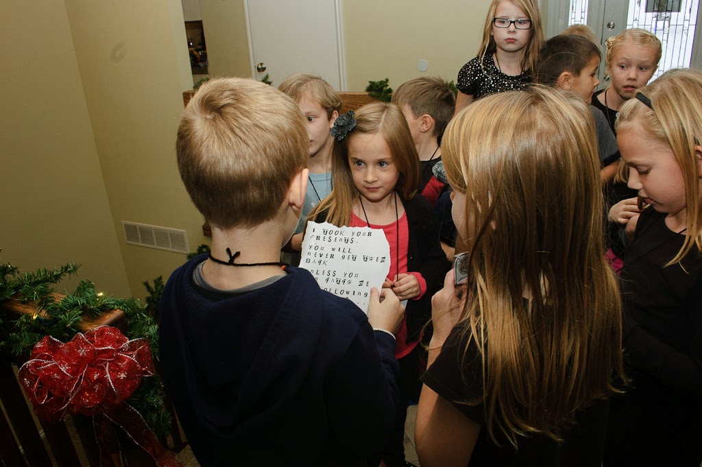 When everyone was there the doorbell rang and we found a RANSOM NOTE. Turns out all the presents that the kids had brought were missing too!!
