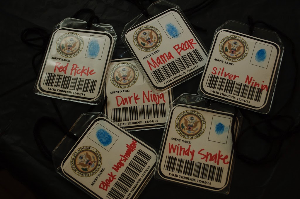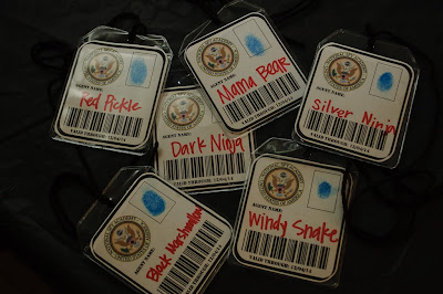 Once they got inside, we had our "Secret Agent Check-in". They checked their name off our roster and then we made their secret agent badges. I fingerprinted them, and then they had to choose their secret identity.