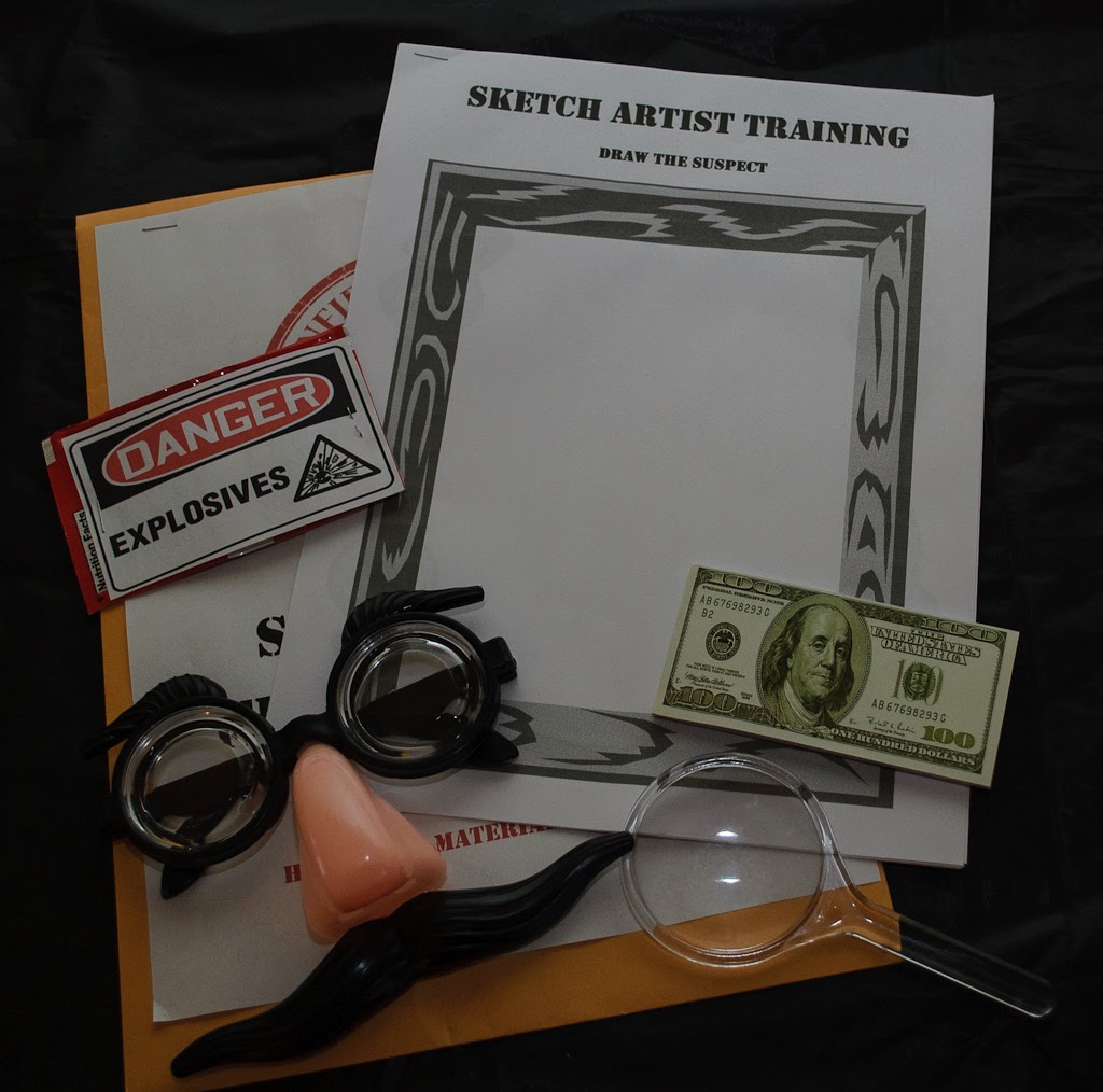 While we were waiting for everyone to show up I had the kids do "Sketch Artist Training" and draw a picture of who they thought the "suspect" was.