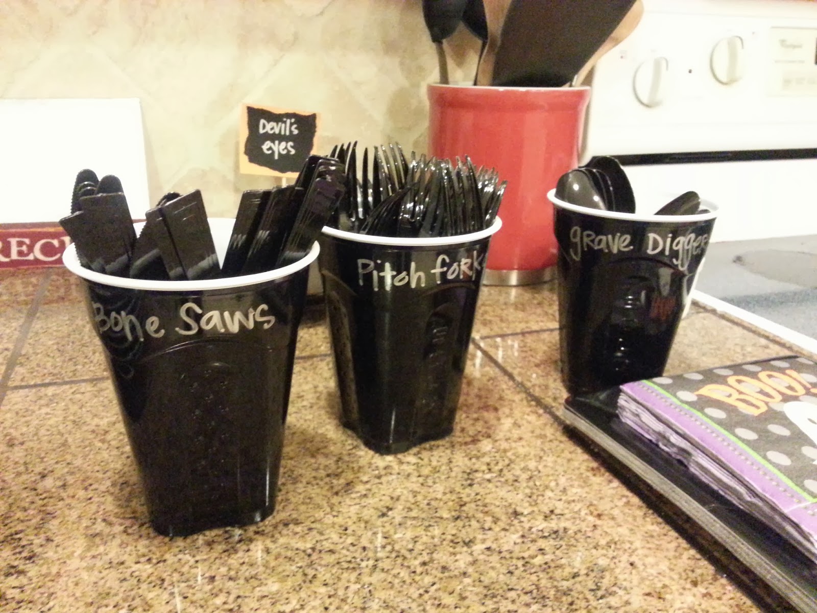 In the kitchen we stopped for cupcakes (which were supposed to look like bombs). And, of course, there was a clue underneath all the cupcakes.