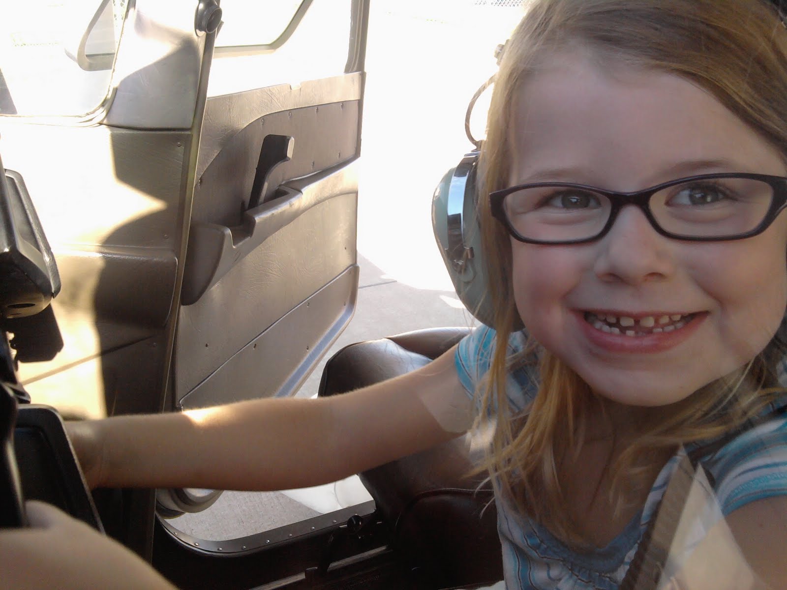 On one of his recent training flights, my pilot brother Andy offered to stop off at the Ogden Airport so the kids could check out the plane. They had a great time and can't believe that Andy knows how to fly a real plane!! Zack got a huge kick out of listening to the radio control tower on Andy's cool headphones!! He even let them play with the controls a little bit and make the rudder go up and down. They were all excited when we flew to Florida and saw the stuff moving on the wings "just like on Andy's plane!!"