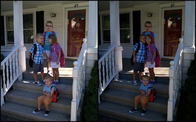 Three years ago when I had four kids ages four and under, I could barely imagine the day when those little ones would go off to school. Even with all the chaos that has been my life, I've had mixed feelings about sending my babies to school because (most of the time) I really like having them home with me. They play well together (most of the time) and they're starting to be really helpful around the house. They are funny, and cute, and we're sort of getting to a really good place in life. But alas, since I have no aspirations for home school (I'm even struggling that I committed to do "JOY" school once a week) I had to send them off to school.