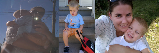 After we dropped the kids off Alex was walking with his shoulders hunched over and a sad, sad look on his face. I asked him what was wrong and he mumbled "I'm just sad." Poor baby, he's stuck with just me! He wanted me to carry him and I tried to piggy-back him because that's how I had been carrying him to and from school (uphill BOTH ways) but he wanted me to snuggle him instead. When we got home he just held his lunchbag and sat on the front steps with his sad, sad, face (until we picked them up, of course.)