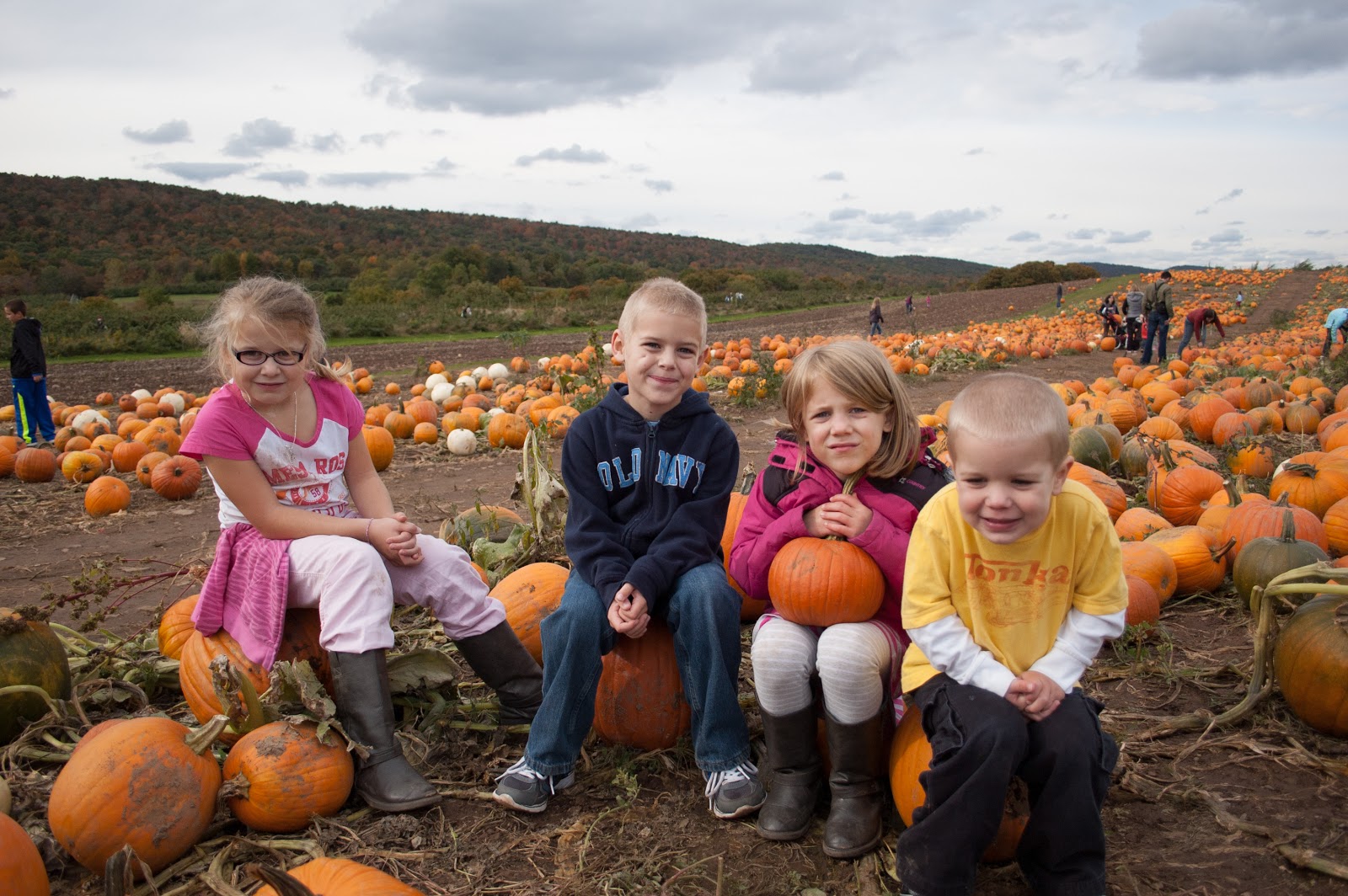 Wow that is what I call a real pumpkin patch! I love it! The kids look liked they were having fun.